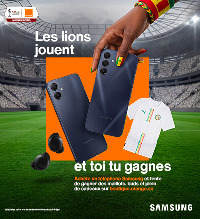 Achète un téléphone Samsung et tente de gagner des maillots supporteur, buds, et pleins de cadeaux. Rendez-vous sur la boutique.orange.sn
