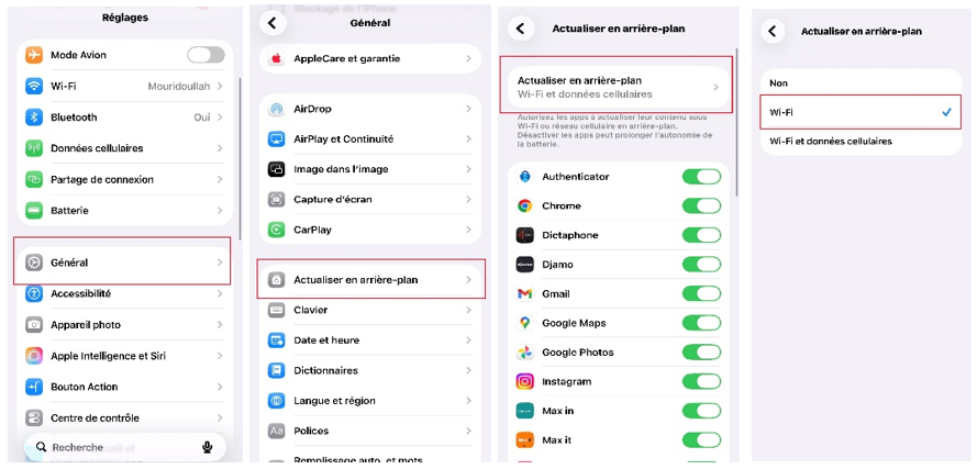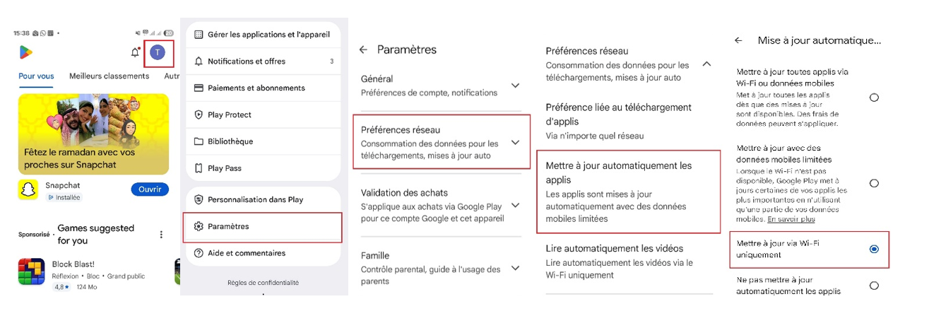 3- Désactivez les mises à jour avec vos données et choisissez l’option « mise à jour avec WIFI »