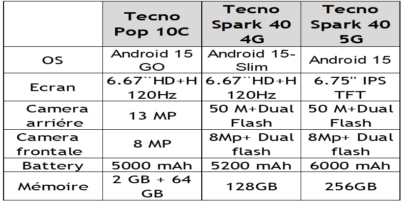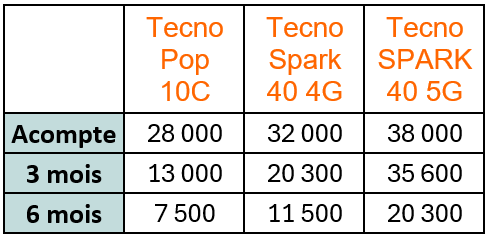 La nouvelle gamme Tecno vient s’ajouter aux smartphones vendus à crédit aux clients dans nos agences.